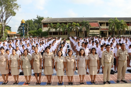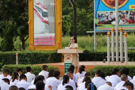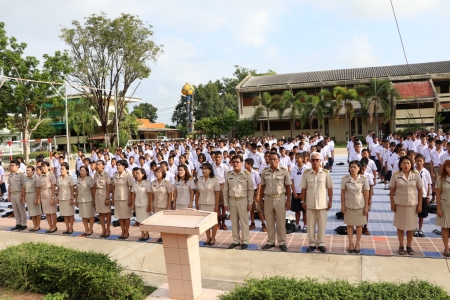 วันที่ 28 กันยายน 2560 นายธีรพัฒน์ ดีเทอดเกียรติ ผู้อำนวยการ ผู้บริหาร คณะครูและนักเรียน ร่วมทำกิจกรรมเชิญธงชาติไทยและร้องเพลงชาติไทย เนื่องในวันพระราชทานธงชาติไทย 28 กันยายน ของทุกปี และครบรอบ 100 ปี ธงชาติไทยเพื่อน้อมรำลึกพระมหากรุณาธิคุณของพระบาทสมเด็จพระมงกุฎเกล้าเจ้าอยู่หัวที่ทรงพระราชทานธงไตรรงค์เป็นธงชาติไทย โอกาสนี้ผู้อำนวยการและครูธนพรรณ เดชาติวงศ์ ณ อยุธยา หัวหน้ากลุ่มสาระการเรียนรู้สังคมศึกษา ศาสนาและวัฒนธรรม ได้ให้ความรู้เกี่ยวกับธงชาติไทย ภาพ : เด็กชายสิทธิศักดิ์ หงส์สุข เด็กชายอภิชาติ สายบุญจันทร์