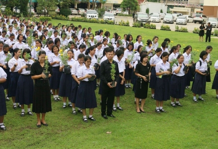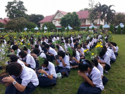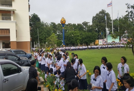 ดร.พยัพ อนันนิล ผู้อำนวยการโรงเรียนเฉลิมขวัญสตรี พร้อมด้วยฝ่ายบริหาร คณะครู บุคลากรทางการศึกษาและนักเรียนโรงเรียนเฉลิมขวัญสตรี พร้อมใจกันนำต้นดาวเรืองมาปลูกประดับภายในบริเวณโรงเรียน เพื่อถวายเป็นพระราชกุศล แสดงความจงรักภักดี และรำลึกในพระมหากรุณาธิคุณอย่างหาที่สุดมิได้ แด่พระบาทสมเด็จพระปรมินทรมหาภูมิพลอดุลยเดช เมื่อวันที่่ 2-3 ตุลาคม 2560 ณ สนามหน้าเสาธงโรงเรียนเฉลิมขวัญสตรี (ภาพ:อดิเรก/ข่าว:ประชาสัมพันธ์)