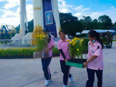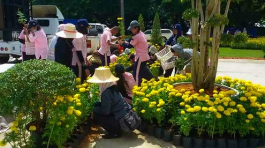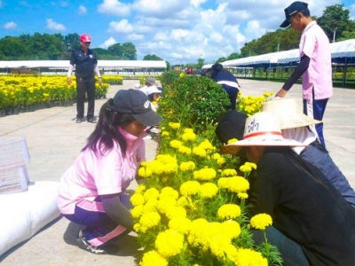 หัวข้อข่าว : ร่วมประดับ ตกแต่งต้นไม้และดอกไม้หน้าพระเมรุมาศจำลอง