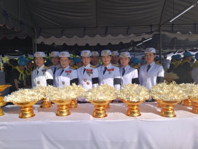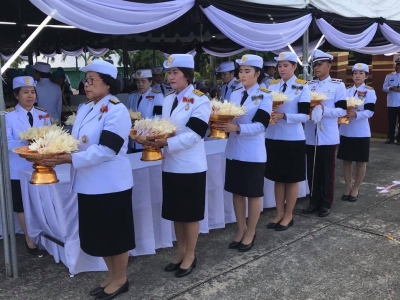 คณะครูโรงเรียนเฉลิมขวัญสตรี ทำงานจิตอาสาดอกไม้จันทน์บริการประชาชน เนื่องในพระราชพิธีถวายพระเพลิงพระบรมศพพระบาทสมเด็จพระปรมินทรมหาภูมิพลอดุลยเดชบรมนาถบพิตร ณ พระเมรุมาศจำลอง ค่ายสมเด็จพระเอกาทศรถ อำเภอเมือง จังหวัดพิษณุโลก เมื่อวันที่่ 26 ตุลาคม 2560 (ภาพ:ข่าว/ประชาสัมพันธ์)