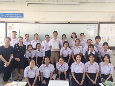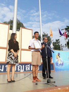 ดร.พยัพ อนันนิล ผู้อำนวยการโรงเรียนเฉลิมขวัญสตรี กล่าวแสดงความยินดีแก่นายภาคภูมิ โพระดก นักเรียนชั้นมัธยมศึกษาปีที่่ 5.10 ได้รับทุนจากสมาคมแลกเปลี่ยนการศึกษาญี่ปุ่น-ไทย (JTEES) เข้าร่วมโครงการ The Friendship Bridge between Japan&Thailand of 2017 ศึกษาแลกเปลี่ยนวัฒนธรรม ณ เมืองเกียวโต ประเทศญี่ปุ่น วันที่ 29 พฤศจิกายน - 9 ธันวาคม 2560 (ภาพ:พีรดา/ข่าว:ประชาสัมพันธ์)