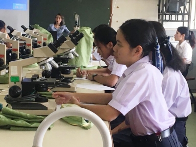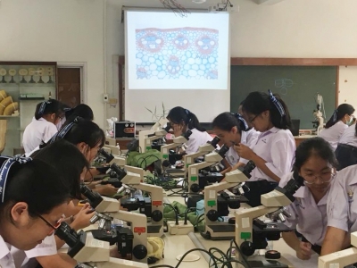 คณะครูกลุ่มสาระการเรียนรู้วิทยาศาสตร์ โรงเรียนเฉลิมขวัญสตรี จัดกิจกรรมฝึกทักษะปฏิบัติการทางวิทยาศาสตร์ สำหรับนักเรียนห้องเรียนพิเศษวิทยาศาสตร์ คณิตศาสตร์ เทคโนโลยีและสิ่งแวดล้อม(SMTE) ชั้นมัธยมศึกษาปีที่ 4 เรื่องการวัดขนาดวัตถุที่มีขนาดเล็กผ่านกล้องจุลทรรศน์โดย ดร.ชนิกานต์ คุ้มนก วิทยากรให้ความรู้ สำหรับกิจกรรมวันนี้เป็นการวัดขนาดของท่อลำเลียงน้ำของต้นหญ้าขน พืชใบเลี้ยงเดี่ยว ครูผู้นำนักเรียนเข้าร่วมกิจกรรมครูอรดี มานักฆ้อง เมื่อวันที่ 21 พฤศจิกายน 2560 ณ คณะวิทยาศาสตร์และเทคโนโลยี มหาวิทยาลัยราชภัฏพิบูลสงคราม อำเภอเมือง จังหวัดพิษณุโลก (ภาพ:อรดี/ข่าว:ประชาสัมพันธ์)
