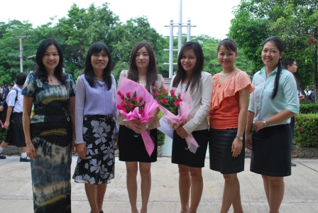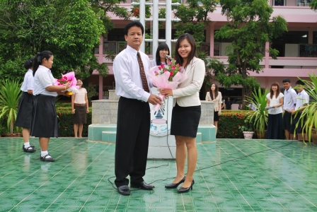 นายธวัช บุญประสพ รองผู้อำนวยการฝ่ายบริหารวิชาการ และคณะครูกลุ่มสาระภาษาต่างประเทศโรงเรียนเตรียมอุดมศึกษา ภาคเหนือ มอบช่อดอกไม้แสดงความยินดีกับ Miss Li Quan คุณครูชาวจีน และนางสาวกวินกรณ์ ชัยเจริญ ที่มาสอนภาษาจีนให้กับนักเรียนและเตรียมความพร้อมให้โรงเรียนก้าวสู่อาเซียน เมื่อวันที่ 24 พฤษภาคม 2555 ผู้ส่งข่าว: อ้อยทิพย์ ฉิมบ้านไร่ หัวหน้าฝ่ายบริหารทั่วไปโรงเรียนเตรียมอุดมศึกษา ภาคเหนือ