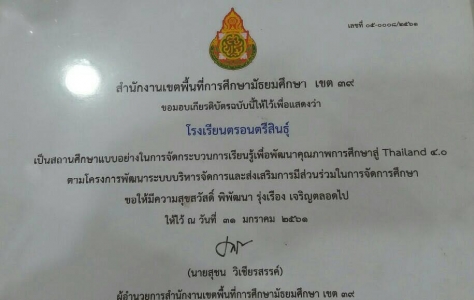 หัวข้อข่าว : โรงเรียนตรอนตรีสินธุ์ เป็นสถานศึกษาแบบอย่างในการจัดกระบวนการเรียนรู้เพื่อพัฒนาคุณภาพการศึกษาสู่ Thailand ๔.๐