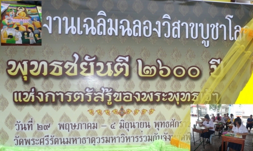 วันที่ 29 พฤษภาคม 2555 วัดพระศรีรัตนมหาธาตุวรมหาวิหาร ร่วมกับ จังหวัดพิษณุโลก จัดประกวดวาดภาพหัวข้อ "อภิสมัยพุทธชยันตี 2,600 ปี แห่งการตรัสรู้ของพระพุทธเจ้า" ระดับมัธยมศึกษาตอนต้น และมัธยมศึกษาตอนปลาย เนื่องในงานเฉลิมฉลองวันวิสาขบูชาโลก โดยงานจัดขึ้นระหว่างวันที่ 29 พฤษภาคม - 4 มิถุนายน 2555 ณ บริเวณหน้าอุโบสถวัดพระศรีรัตนมหาธาตุวรมหาวิหาร มีนักเรียนมัธยมศึกษา สังกัด สพม.39 เข้าร่วมกิจกรรมการแข่งขัน สรุปผลการประกวดวาดภาพ ดังนี้ ระดับ ม.ต้น ชนะเลิศ ด.ญ.นัทธมน ญาณมุุข ร.ร.เฉลิมขวัญสตรี รองชนะเลิศ อันดับ 1 ด.ญ.ณัฏฐา ณรงค์สระน้อย ร.ร.วังทองพิทยาคม รองชนะเลิศ อันดับ 2 ด.ญ.ชนินทร รัตนเวชสิทธิ ร.ร.จุฬาภรณราชวิทยาลัย พิษณุโลก ชมเชย ด.ญ.ทิวาพร อินนาคกูล ร.ร.ดงประคำพิทยาคม ระดับ ม.ปลาย ชนะเลิศ น.ส.ปิยะธิดา ไกรกิจราษฎร์ ร.ร.จ่านกร้อง รองชนะเลิศ อันดับ 1 น.ส.ยุวรรณา คนะวงษ์ ร.ร.เฉลิมขวัญสตรี รองชนะเลิศ อันดับ 2 น.ส.สิริพร กลมกล่อม ร.ร.จุฬาภรณราชวิทยาลัย พิษณุโลก ชมเชย นายอัครไชย ไชยงามเมือง ร.ร.พุทธชินราชพิทยา ขอบคุณภาพข่าวจาก / เปรมฤดี เกลาพิมาย , พรทิพย์ เทศแจ่ม: post