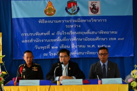 วันที่ 21 มีนาคม พ.ศ. 2561 โรงเรียนสฤษดิ์เสนาพิทยาคม จัดพิธีลงนามความร่วมมือ (MOU) ทางวิชาการ ระหว่างสำนักงานเขตพื้นที่การศึกษามัธยมศึกษา เขต 39 และกรมรบพิเศษที่ 4 ค่ายสฤษดิ์เสนา โดยมี พันเอกชาคริต อุจะรัตน ผู้บังคับการกรมรบพิเศษที่ 4 ค่ายสฤษดิ์เสนา นายสุชน วิเชียรสรรค์ ผู้อำนวยการสำนักงานเขตพื้นที่การศึกษามัธยมศึกษา เขต 39 และนายผจงเกียรติ จีนสลุต รักษาการในตำแหน่งผู้อำนวยการโรงเรียนสฤษดิ์เสนาพิทยาคม ทำพิธีลงนามความร่วมมือ (MOU) ทางวิชาการ เพื่อแก้ไขปัญหาจำนวนนักเรียนมีแนวโน้มลดลง ซึ่งทางกรมรบพิเศษที่ 4 ค่ายสฤษดิ์เสนา กับโรงเรียนสฤษดิ์เสนาพิทยาคม สำนักงานเขตพื้นที่การศึกษามัธยมศึกษา เขต 39 จึงได้จัดกิจกรรมเตรียมความพร้อมในการเรียนต่อโรงเรียนนายสิบ ระดับชั้นมัธยมศึกษาปีที่ 1 และชั้นมัธยมศึกษาปีที่ 4 ในปีการศึกษา 2561 เพื่อดึงดูดนักเรียนที่มีความสนใจในอาชีพทหารและสอดคล้องกับความต้องการของชุมชน และเพื่อส่งเสริม สนับสนุน การพัฒนาด้านการเรียนการสอน วิจัย การอบรมและบุคลากรทางการศึกษาในการเตรียมความพร้อมเข้าโรงเรียนนายสิบหรือโรงเรียนเตรียมทหาร และยกระดับคุณภาพการศึกษาให้ผู้เรียนมีทักษะที่จำเป็นสำหรับศตวรรษที่ 21 อีกทั้งกรมรบพิเศษที่ 4 ค่ายสฤษดิ์เสนา สนับสนุน พาหนะและพลขับในการรับส่งนักเรียนและโรงเรียนสฤษดิ์เสนาพิทยาคม สนับสนุน ค่าน้ำมันพาหนะในการรับส่งนักเรียนอีกด้วย ณ โรงเรียนสฤษดิ์เสนาพิทยาคม ตำบลวังนกแอ่น อำเภอวังทอง จังหวัดพิษณุโลก