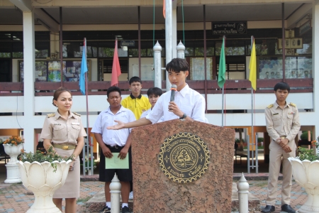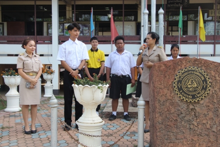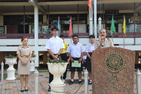 ในวันจันทร์ ที่ 4 เดือนมิถุนายน พ.ศ.2561 ผู้ช่วยผู้อำนวยการโรงเรียน นางศุภานัน ปฏิสนธิ คณะครู และนักเรียนกล่าวต้อนรับนักศึกษาแลกแปลี่ยน นาย ZHOU YU QI จากมหาวิทยาลัย Neijiang Normal University ตามโครงการแลกเปลี่ยนภาษาและวัฒนธรรมไทย จีน รุ่นที่ 3 บริเวณหน้าเสาธง บรรยากาศเป็นไปด้วยความอบอุ่น