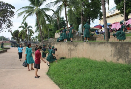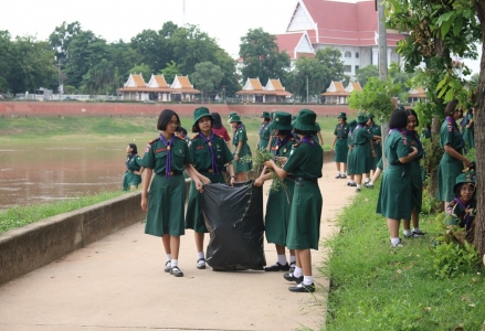 คณะเนตรนารีและผู้กำกับ ระดับชั้นมัธยมศึกษาปีที่่ 3 โรงเรียนเฉลิมขวํญสตรี ร่วมกันทำกิจกรรมบำเพ็ญประโยชน์ ด้วยการเก็บขยะ เศษกิ่งไม้ ใบไม้ วัชพืช เพื่อเป็นการปลูกฝังค่านิยมเรื่องการบำเพ็ญประโยชน์ต่อส่วนรวม ณ บริเวณสวนชมน่าน อ.เมือง จ.พิษณุโลก (ภาพ:อดิเรก/ข่าว:ประชาสัมพันธ์)