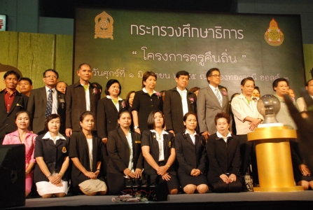 วันที่ 1 มิถุนายน 2555 เวลา 9.00 น. ศาสตราจารย์ สุชาติ ธาดาธำรงเวช รัฐมนตรีว่าการกระทรวงศึกษาธิการ (ศธ.) เป็นประธานเปิดงาน ครูคืนถิ่น ณ อิมแพคอารีนา เมืองทองธานี Hall 3 ซึ่งสำนักงานคณะกรรมการการศึกษาขั้นพื้นฐาน (สพฐ.) จัดงานประกาศความสำเร็จการดำเนินโครงการ ปีนี้สามารถย้ายครูกลับภูมิลำเนามากที่สุดในประวัติศาสตร์การศึกษาไทย จำนวน 10,174 คน สำนักงานเขตพื้นที่การศึกษามัธยมศึกษา เขต 39 (พิษณุโลก อุตรดิตถ์) นำโดย ดร.สมเกียรติ บุญรอด ผู้อำนวยการสำนักงานเขตพื้นที่การศึกษามัธยมศึกษา เขต 39 จัดนิทรรศการ พร้อมพาคณะครูในโครงการ ครูคืนถิ่น ของ สพม.เขต 39 เข้าร่วมงานดังกล่าว ขณะที่เยี่ยมชมนิทรรศการ ครูที่มาร่วมงาน เข้ากราบขอบคุณ บอกว่าดีใจที่รัฐบาลมีโครงการนี้ ทำให้ขวัญและกำลังใจของครูดีขึ้น พร้อมที่จะปฏิบัติหน้าที่ให้ดีที่สุด <ติดตามในเว็บ สพฐ. www.obec.go.th/ภาคเหนือ หรือ Facebook สพม พิษณุโลก อุตรดิตถ์ > / พรทิพย์ เทศแจ่ม ประชาสัมพันธ์ สพม.เขต 39 : ข่าว