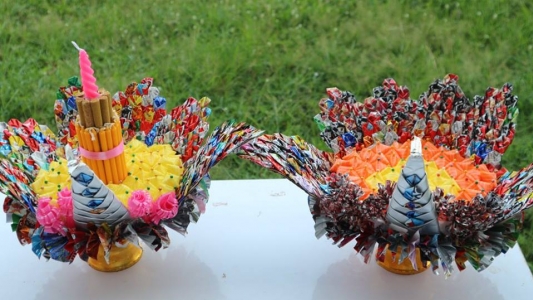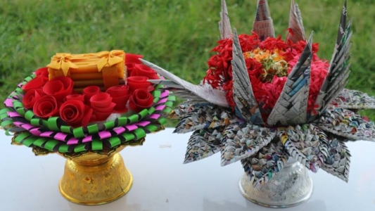 หัวข้อข่าว : พานไหว้ครูจากวัสดุรีไซเคิลโรงเรียนไทรย้อยพิทยาคม