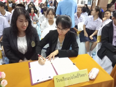 "บันทึกข้อตกลงความร่วมมือว่าด้วยการสร้างภูมิคุ้มกันและป้องกันแก้ไขปัญหายาเสพติด" วันที่ 15 มิถุนายน 2561 ว่าที่ ร.ต.ประดิษฐ์ คำผงแดง ผู้อำนวยการโรงเรียนบ่อโพธิ์วิทยา ครูเบญจมาศ หมากผิน และนักเรียน จำนวน 4 คน เข้าร่วมบันทึกข้อตกลงความร่วมมือว่าด้วยการสร้างภูมิคุ้มกันและป้องกันแก้ไขปัญหายาเสพติด กลุ่มเด็กและเยาวชนในสถานศึกษาตามโครงการสถานศึกษาสีขาว ปลอดยาเสพติดและอบายมุข ระหว่างโรงเรียนบ่อโพธิ์วิทยากับ อำเภอนครไทย สถานีตำรวจภูธรนครไทย ชุดปฏิบัติการกองร้อยรักษาความสงบอำเภอนครไทย โรงพยาบาลสมเด็จพระยุพราชำเภอนครไทย และสาธารณสุขอำเภอนครไทย ณ ห้องโสตทัศนศึกษา โรงเรียนนครไทย