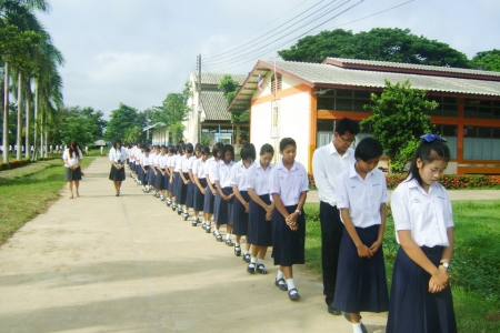 ผอ.บรรเทิง คำทอง ผู้อำนวยการโรงเรียนด่านแม่คำมันพิทยาคม คณะครู และนักเรียนได้เดินจงกรม เนื่องในวันวิสาขบูชา พุทธชยันตี 2600 ปีแห่งการตรัสรู้ของพระพุทธเจ้า เมื่อวันที่ 1 มิถุนายน 2555 ณ โรงเรียนด่านแม่คำมันพิทยาคม