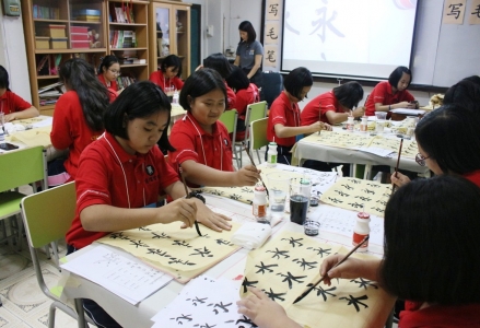 คณะครูโครงการพัฒนาทักษะภาษาจีน กลุ่มสาระการเรียนรู้ภาษาต่างประเทศ โรงเรียนเฉลิมขวัญสตรี จัดกิจกรรมค่ายภาษาและวัฒนธรรมจีน ประจำปีการศึกษา 2561 สำหรับนักเรียนชั้นมัธยมศึกษาปีที่่ 1 กิจกรรมประกอบด้วย การตัดกระดาษจีน การวาดหน้ากากจีน หน้ากากงิ้ว การเขียนพู่กันจีน ภูมิศาสตร์จีน การร้อยลูกปัดจีน และเกี๊ยวจีน เมื่อวันเสาร์ที่่ 23 มิถุนายน 2561 ณ ห้องโสตฯ อาคารเฉลิมพระเกียรติ 50 พรรษาฯ โรงเรียนเฉลิมขวัญสตรี (ภาพ:อดิเรก/ข่าว:ประชาสัมพันธ์)