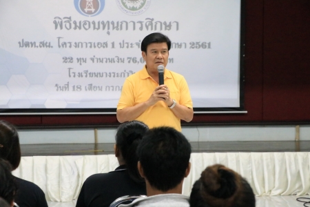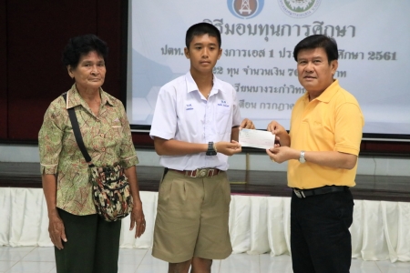 นายธีรพัฒน์ ดีเทอดเกียรติ ผู้อำนวยการโรงเรียนมอบทุนการศึกษาให้แก่นักเรียน ที่มีความประพฤติดี ซึ่งสนับสนุนทุนการศึกษาโดย บริษัท ปตท.สผ. จำกัด (มหาชน) โครงการเอส 1 ประจำปี 2561 จำนวน 22 ทุน จำนวนเงิน 76,000 บาท ขอขอบคุณบริษัท ปตท.สผ. จำกัด (มหาชน) มา ณ โอกาสนี้