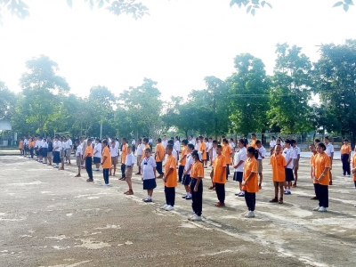 หัวข้อข่าว : ดร.รสสุคนธ์ อินชัยเขา กล่าวทักทายนักเรียนหน้าเสาธง