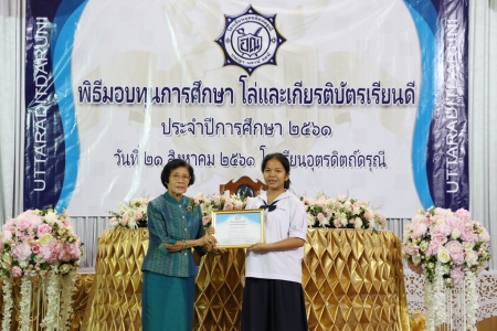 วันที่ 21 สิงหาคม 2561 นายธารา น่วมศิริ ผู้อำนวยการโรงเรียนอุตรดิตถ์ดรุณี ได้เป็นประธานในพิธีมอบทุนการศึกษา โล่ และเกียรติบัตรเรียนดี ประจำปีการศึกษา 2560 ณ หอประชุมจันนารี โรงเรียนอุตรดิตถ์ดรุณี โดยมีอดีตผู้อำนวยการ คณะครู เจ้าของกองทุน ชมรมเพื่อนครูโรงเรียนอุตรดิตถ์ดรุณี และผู้ปกครอง เข้าร่วมเป็นเกียรติและมอบทุนการศึกษาให้กับนักเรียนที่มีผลการเรียนระดับยอดเยี่ยมและระดับดีมาก มีความประพฤติดี //เครือข่ายประชาสัมพันธ์โรงเรียนอุตรดิตถ์ดรุณี ภาพ:ข่าว