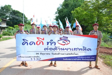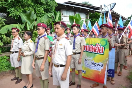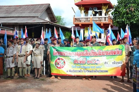 หัวข้อข่าว : ลูกเสือร่วมพิธีมอบธงสัญลักษณ์ครัวเรือนปลอดภัยจากยาเสพติด และเปิดศูนย์การเรียนรู้แม่ของแผ่นดิน