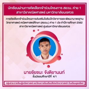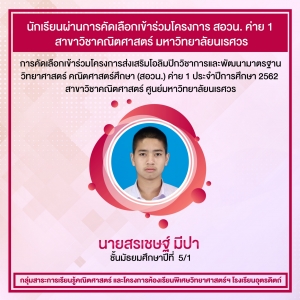 หัวข้อข่าว : นักเรียนโรงเรียนอุตรดิตถ์ ผ่านการคัดเลือกเข้าร่วมโครงการ สอวน. ค่าย 1 สาขาวิชาคณิตศาสตร์ ศูนย์มหาวิทยาลัยนเรศวร