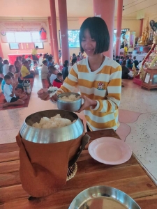 หัวข้อข่าว : ทำบุญตักบาตร ณ วัดใกล้บ้าน เพื่อถวายเป็นพระราชกุศล