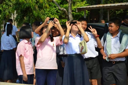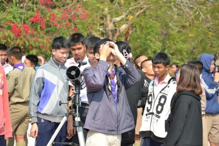 สุริยุปราคาบางส่วนเหนือฟ้าเมืองไทย . ในวันที่ 26 ธันวาคม 2562 ตั้งแต่เวลา 10.00น.จะเกิดปรากฏการณ์ #สุริยุปราคาวงแหวน แนวคราสวงแหวนพาดผ่านประเทศอินเดีย ศรีลังกา สิงคโปร์ และอินโดนีเซีย สำหรับประเทศไทยจะเห็นเป็น #สุริยุปราคาบางส่วน ดวงจันทร์จะบดบังดวงอาทิตย์บางส่วน ทำให้มองเห็นดวงอาทิตย์เว้าแหว่ง สามารถสังเกตได้ทุกภูมิภาคของไทย และในวันนี้ คณะครู บุคลากรทางการศึกษา นักเรียน ร่วมชมสุริยุปราคา บริเวณสนามหน้าเสาธง โดยกลุ่มสาระวิทยาศาสตร์ ได้จัดเตรียมกล้องดูดาว และอุปกรณ์สำหรับการชมสุริยุปราคา พร้อมคอยให้คำแนะนำกับนักเรียน พร้อมทั้งมีการทดลองอุปกรณ์ที่นักเรียนได้ประดิษฐ์มา สำหรับการชมสุริยุปราคาในครั้งนี้ด้วย