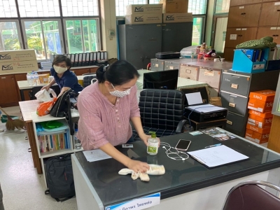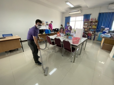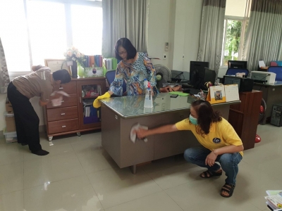 วันที่ 19 มีนาคม 2563 คณะครูและบุคลากรโรงเรียนเฉลิมขวัญสตรี พร้อมใจกันทำกิจกรรม Big Cleaning Day ทำความสะอาดห้องสำนักงาน ห้องปฏิบัติการ โดยการทำความสะอาดด้วยน้ำยาฆ่าเชื้อโรคบริเวณโต๊ะ เก้าอี้ ประตู หน้าต่าง วัสดุ ครุภัณฑ์ภายในห้องทำงาน ตามมาตรการป้องกันวิกฤตการณ์จากโรคติดเชื้อไวรัสโคโรน่า 2019 ของโรงเรียน และบริเวณหน้าห้องวิชาการจัดระเบียบระยะห่างสำหรับผู้ปกครองที่จะมาติดต่อราชการกับโรงเรียนในระยะ 2 เมตร กิจกรรมนี้ได้รับความร่วมมือจากคณะครูและบุคลากรทุกท่านเป็นอย่างดียิ่ง (ภาพ:ข่าว/ประชาสัมพันธ์)