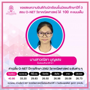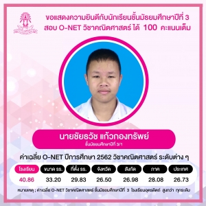 หัวข้อข่าว : นักเรียนโรงเรียนอุตรดิตถ์ O-NET วิชาคณิตศาสตร์ ปีการศึกษา 2562 ได้ 100 คะแนนเต็ม