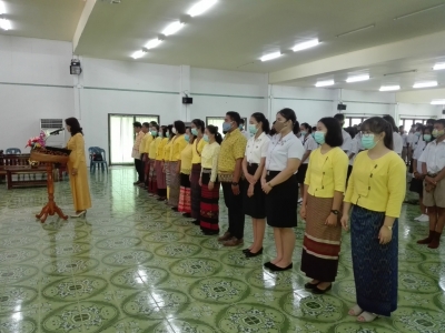 พฤหัสที่ 23 กรกฎาคม 2563 เวลา 8.30 น.นางภิมุขสุดา ไวยกูล ผู้อำนวยการโรงเรียน นำคณะครู นักเรียน จัดกิจกรรมเทิดพระเกียรติเพื่อแสดงความจงรักภักดีเนื่องในวโรกาสเฉลิมพระชนมพรรษาพระบาทสมเด็จพระปรเมนทรรามาธิบดีศรีสินทรมหาวชิราลงกรณ พระวชิรเกล้าเจ้าอยู่หัว ณ หอประชุมบัวทอง