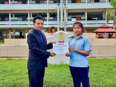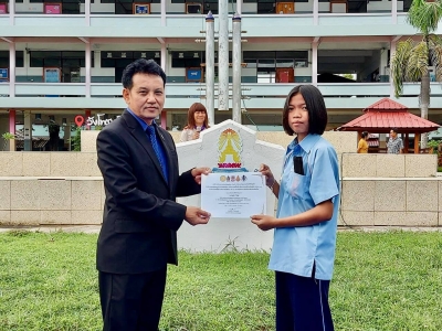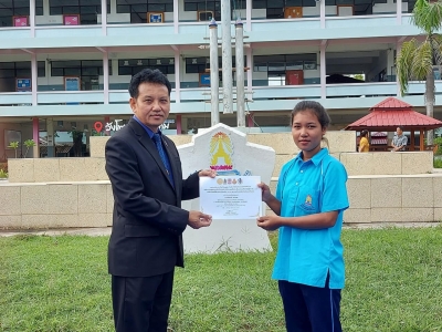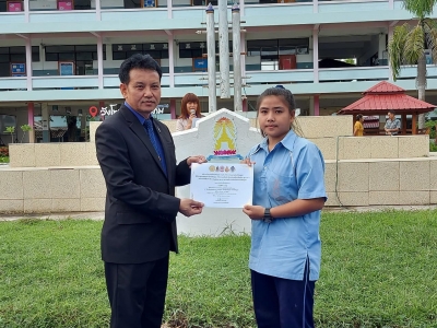 หัวข้อข่าว : ผู้อำนวยการมอบเกียรติบัตรให้แก่นักเรียนที่เข้าร่วมการอบรมคุณธรรม จริยธรรม ประจำปี 2563