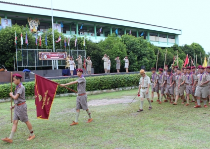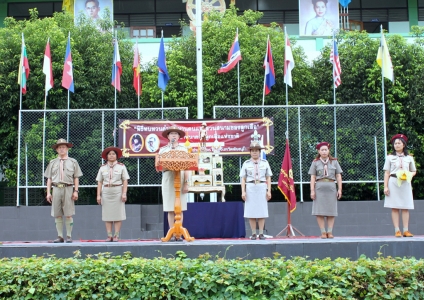นางเพ็ญศรี แต่งเนตร ผู้อำนวยการโรงเรียนนครไทย เป็นประธานในพิธีทบทวนคำปฏิญานตนและสวนสนามของลูกเสือ เนื่องในว้นคล้ายวันสถาปนาคณะลูกเสือแห่งชาติ