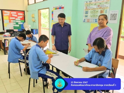 ดร.สุวัฒน์ สัตย์ซื่อ ผู้อำนวยการโรงเรียนดอนทองวิทยา นายจีระศักดิ์ จันพร รองผู้อำนวยการโรงเรียนดอนทองวิทยา และนางอารี อันชูฤทธิ์ หัวหน้าบริหารกลุ่มงานวิชาการ เข้าเยี่ยมนิเทศ ติดตาม การจัดกิจกรรมของกลุ่มสาระการเรียนรู้ภาษาต่างประเทศ โรงเรียนดอนทองวิทยา โดยนางวลัยรัก อินทรสุวรรณ และนางศุวิมล เสริมสุข ครูกลุ่มสาระการเรียนรู้ภาษาต่างประเทศ โรงเรียนดอนทองวิทยา จัดกิจกรรมพัฒนาทักษะทางภาษาอังกฤษ ในภาคเรียนที่ 1 ปีการศึกษา 2567 ระหว่างวันที่ 19 23 สิงหาคม 2567 โดยมีวัตถุประสงค์เพื่อพัฒนาความสามารถทางภาษาอังกฤษผ่านการทดสอบเรื่องการใช้คำปรากฏร่วม Collocation (Verb-noun) การพัฒนาการเขียนโดยใช้ Substitution table และการประกวด Handwriting โดยให้นักเรียนทุกคนได้รับการทดสอบ ตามวันเวลาที่นัดหมายกับครูผู้สอน โดยนักเรียนทุกคนให้ความสนใจและร่วมกิจกรรมเป็นอย่างดี