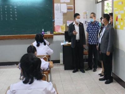วันที่ 22 พฤษภาคม 2564 เวลา 08.00 น. นายอโณทัย ไทยวรรณศรี ผู้อำนวยการสำนักเทคโนโลยีเพื่อการเรียนการสอน (สทร.) รักษาการในตำแหน่งที่ปรึกษาด้านเทคโนโลยีเพื่อการเรียนการสอน สำนักงานคณะกรรมการการศึกษาขั้นพื้นฐาน (สพฐ.) ดร.สุชน วิเชียรสรรค์ ผู้อำนวยการสำนักงานเขตพื้นที่การศึกษามัธยมศึกษาพิษณุโลก พร้อมคณะผู้บริหารการศึกษา และเจ้าหน้าที่จาก สนง.ปปช.พิษณุโลก ได้เดินทางมาตรวจเยี่ยมสนามสอบโรงเรียนเฉลิมขวัญสตรี ดูความเรียบร้อย ตั้งแต่กระบวนการคัดกรอกนักเรียนบริเวณหน้าโรงเรียน การเข้าห้องสอบทุกขั้นตอน ตามมาตรการป้องกันการแพร่ระบาดของโรคติดเชื้อโควิด-19 โดยมี ดร.สุรสิทธิ์ ลาภอินทรีย์ ผู้อำนวยการโรงเรียนเฉลิมขวัญสตรี พร้อมด้วยฝ่ายบริหาร ให้การต้อนรับนำชมจุดคัดกรอง ซึ่งได้รับความอนุเคราะห์พยาบาล จากโรงพยาบาลพิษณุเวชมาร่วมคัดกรองทั้ง 2 จุดทางเข้า ตรวจวัดอุณหภูมิ และให้ผู้สอบทยอยขึ้นห้องสอบ เว้นระยะห่างระหว่างการเดิน โดยคำนึงหลัก Social Distancing ซึ่งห้องสอบจัดสอบห้องละ 20 คน เท่านั้น มีห้องสอบสำรองสำหรับนักเรียนที่มีความเสี่ยง พร้อมทั้งสรุปรายงานการดำเนินการจัดสอบด้วยมาตรการเข้มตามที่ ศบค.กำหนดอย่างเคร่งครัด