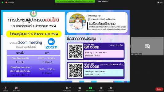 หัวข้อข่าว : ประชุมผู้ปกครองออนไลน์ ประจำภาคเรียนที่ 1 ปีกาศึกษา 2564