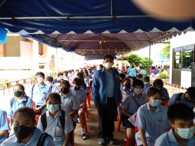 วันที่ 12 ตุลาคม 2564 โรงเรียนเตรียมอุดมศึกษาน้อมเกล้า อุตรดิตถ์ ได้นำนักเรียนเข้ารับการฉีดวัคซีนไฟเซอร์ (Pfizer) เพื่อป้องกันโรคโควิด-19 สำหรับนักเรียนที่มีอายุระหว่าง 12-18 ปี รอบที่ 1 จำนวน 378 โดส ซึ่งโรงเรียนเตรียมอุดมศึกษาน้อมเกล้า อุตรดิตถ์ ได้รับการจัดสรรวัคซีนจากสำนักงานสาธารณสุขจังหวัดอุตรดิตถ์ โอกาสนี้ ดร.วีระพันธุ์ ดอนท้วม ผู้อำนวยการโรงเรียนฯ พร้อมด้วยคณะครู ได้นำนักเรียน จำนวน 378 คน เข้ารับบริการการฉีดวัคซีน ณ ห้องประชุมสักทอง วิทยาลัยพยาบาลบรมราชชนนีอุตรดิตถ์ ครบตามจำนวน
