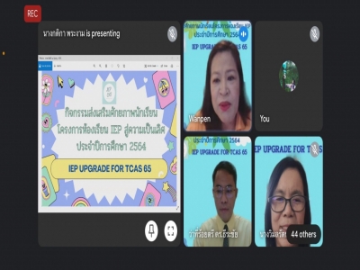 โครงการห้องเรียนพิเศษ Intensive English Program : IEP ได้ดำเนินการจัดกิจกรรม การส่งเสริมศักยภาพนักเรียนโครงการห้องเรียน IEP สู่ความเป็นเลิศ : IEP Upgrade for TCAS 65 ประจำปีการศึกษา 2564 ขึ้น เพื่อเตรียมนักเรียนโครงการห้องเรียนพิเศษ IEP ให้มีความพร้อมด้านวิชาการอย่างเต็มศักยภาพ และพัฒนาผลสัมฤทธิ์ทางการสอบ TCAS ปี 2565 เป็นการสอนเสริม(ติวเข้ม) ใน 6 รายวิชา โดยวิทยากรผู้เชี่ยวชาญและมีประสบการณ์ ในรูปแบบ Online ผ่านทาง Facebook Live ระหว่างวันที่ 25 28 และ 30 - 31 ตุลาคม 2564 ณ ที่พักอาศัยของนักเรียน