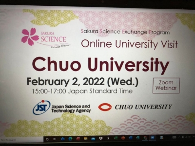 หัวข้อข่าว : กิจกรรมการศึกษาดูงานมหาวิทยาลัยญี่ปุ่น รูปแบบออนไลน์ภายใต้โครงการ SAKURA SCIENCE HIGH SCHOOL PROGRAM ครั้งที่ 11 ณ มหาวิทยาลัย Chuo