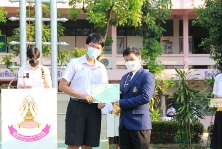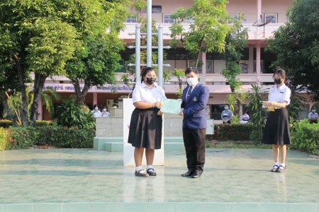 หัวข้อข่าว : วันที่ 1 มีนาคม 2565 ผู้อำนวยการชัยลักษณ์ รักษา มอบเกียรติบัตรแก่นักเรียนที่เข้าร่วมแข่งขันกิจกรรมแต่งคำขวัญและกิจกรรมออกแบบโปสเตอร์อิเล็กทรอนิกส์