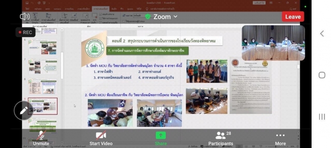 วันที่ 10 พฤษภาคม 2565 นายเสกสันต์ ทองม่วง ผู้อำนวยการโรงเรียนวังทองพิทยาคม พร้อมด้วย คณะผู้บริหาร หัวหน้ากลุ่มงานและหัวหน้ากลุ่มสาระการเรียนรู้ เข้ารับการนิเทศ ติดตาม การเตรียมความพร้อมสำหรับการดำเนินการเปิดภาคเรียนที่ 1 ปีการศึกษา 2565 ด้วยรูปแบบออนไลน์ผ่านระบบ ZOOM Meetting จากสำนักงานเขตพื้นที่การศึกษามัธยมศึกษาพิษณุโลก อุตรดิตถ์ โดยได้รับเกียรติจาก นางสาวจิรวรรณ สุรเสียง รอง ผอ.สพม.พลอต. นางนิภาดา สุขสบาย ผอ.กลุ่มบริหารการเงินและสินทรัพย์ และนางสาวดารารัตน์ เทพมาศ ศึกษานิเทศก์ เป็นคณะกรรมการนิเทศฯ ในครั้งนี้ ณ ห้องประชุมเนินคลี โรงเรียนวังทองพิทยาคม