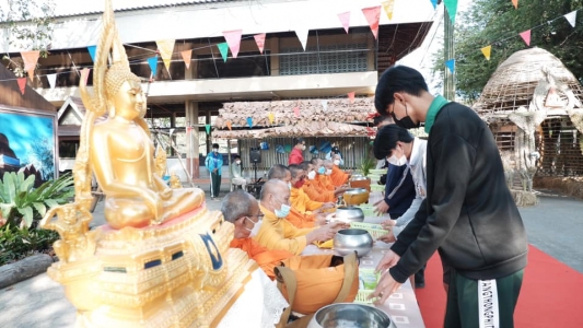 วันที่ 29 ธันวาคม 2565 ดร.บุปผา ทองน้อย ผู้อำนวยการโรงเรียนวังทองพิทยาคม คณะผู้บริหาร คณะครูและบุคลากรทางการศึกษาโรงเรียนวังทองพิทยาคม ร่วมทำบุญตักบาตรข้าวสารอาหารแห้งแด่พระสงฆ์ เพื่อถวายแด่สมเด็จพระเจ้าลูกเธอ เจ้าฟ้าพัชรกิติยาภา นเรนทิราเทพยวดี กรมหลวงราชสาริณีสิริพัชร มหาวัชรราชธิดา ให้พระองค์หายจากพระอาการประชวรโดยเร็ว ณ โรงเรียนวังทองพิทยาคม