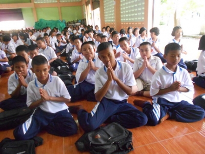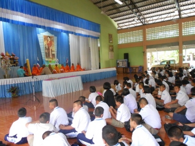 ท่านสมาน สารีคำ ท่านผู้อำนวยการโรงเรียนวัดโบสถ์ศึกษา พร้อมคณะครูและนักเรียน ร่วมถวายเทียนจำนำพรรษา เมื่อวันศุกร์ที่ 27 กรกฎาคม 2555 ณ หอประชุมไชยสิทธิ์รังสรรค์ โรงเรียนวัดโบสถ์ศึกษา