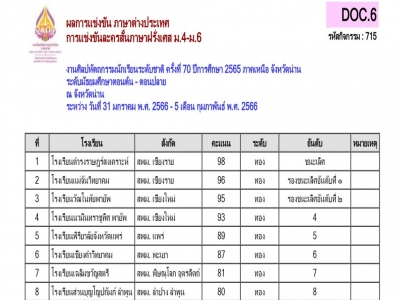 หัวข้อข่าว : ผลการแข่งขันศิลปหัตถกรรมนักเรียนระดับชาติ ครั้งที่ 70 ภาคเหนือ จังหวัดน่าน ปีการศึกษา 2565 กลุ่มสาระการเรียนรู้ภาษาต่างประเทศ (ภาษาฝรั่งเศส)
