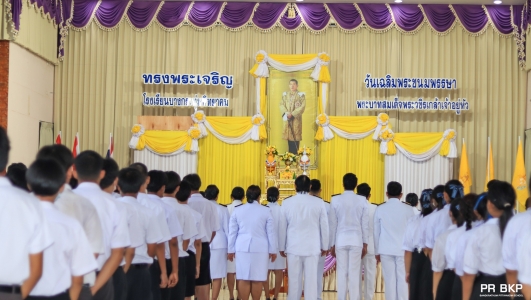 วันพุธที่ ๒๖ กรกฎาคม ๒๕๖๖ เวลา ๐๘:๓๐ น. ดร.ปิยะชัย ภู่จันทร์ดิฐกุล ผู้อำนวยการโรงเรียน บางกระทุ่มพิทยาคม มอบหมายให้นางสาวกานต์พิชชา ปภาณัท รองผู้อำนวยการโรงเรียน เป็นประธาน ในพิธีเฉลิมพระเกียรติพระบาทสมเด็จพระวชิรเกล้าเจ้าอยู่หัว พร้อมด้วยนายกิตติคุณ อินทนนท์ รองผู้อำนวยการโรงเรียน คณะครูและบุคลากรทางการศึกษา นักเรียน โรงเรียนบางกระทุ่มพิทยาคม เข้าร่วมพิธี ณ หอประชุมเทพมงคล โรงเรียนบางกระทุ่มพิทยาคม