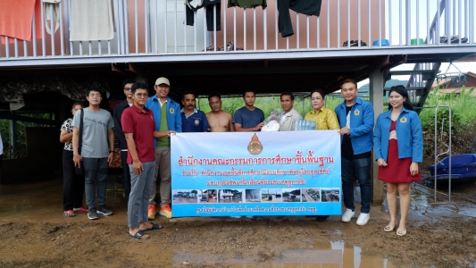 วันที่ 13 ตุลาคม 2566 ว่าที่ร้อยตรี ธนุ วงษ์จินดา เลขาธิการคณะกรรมการการศึกษาขั้นพื้นฐาน (เลขาธิการ กพฐ.) มอบหมายให้ ส.ต.ต.ดร.นปดล นพเคราะห์ ผู้อำนวยการสำนักงานเขตพื้นที่การศึกษามัธยมศึกษาพิษณุโลก อุตรดิตถ์ พร้อมด้วย นางสาวภัทรโรบล จันทร์ดำ ผู้อำนวยการกลุ่มส่งเสริมการจัดการศึกษา นายภัทรพล แก้วเสนา ศึกษานิเทศก์ ลงพื้นที่มอบถุงยังชีพ เครื่องอุปโภค บริโภค ของสำนักงานคณะกรรมการการศึกษาขั้นพื้นฐาน ให้กับนักเรียนและครอบครัวนักเรียนที่ได้รับผลกระทบและความเสียหายจากเหตุอุทกภัย เพื่อบรรเทาความเดือดร้อนเบื้องต้น โดยมี ดร.บุปผา ทองน้อย ผู้อำนวยการโรงเรียนวังทองพิทยาคม นายวิทยา เผือกชาวนา รองผู้อำนวยการโรงเรียน นายสถิต มานักฆ้อง กำนันตำบลชัยนาม และคณะครูโรงเรียนวังทองพิทยาคมให้การต้อนรับคณะตรวจเยี่ยมดังกล่าว ณ ตำบลชัยนาม อำเภอวังทอง จังหวัดพิษณุโลก