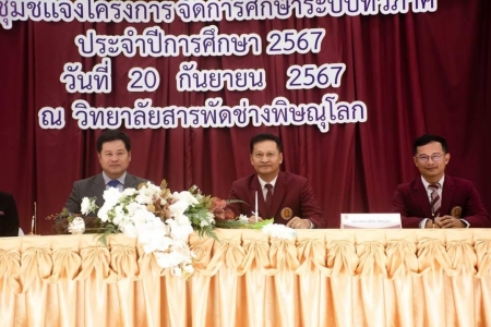 วันที่ 20 กันยายน 2567 นายชัยลักษณ์ รักษา ผู้อำนวยการโรงเรียนวังทองพิทยาคม ประชุมชี้แจงโครงการการศึกษา ระบบทวิศึกษา และร่วมพิธีลงนามบันทึกข้อตกลงความร่วมมือ (MOU) ระหว่างวิทยาลัยฯ กับโรงเรียน ประจำปีการศึกษา 2567 ณ ห้องประชุม อาคารอำนวยการ วิทยาลัยสารพัดช่างพิษณุโลก