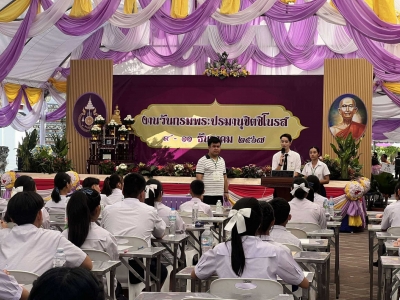 วันที่ ๙ - ๑๐ ธันวาคม ๒๕๖๗ ดร.สุวัฒน์ สัตย์ซื่อ ผู้อำนวยการโรงเรียนบางกระทุ่มพิทยาคม มอบหมายให้ กลุ่มสาระการเรียนรู้ภาษาไทย นำโดย นางสาวพิมพ์พิสุทธิ์ ขันทะสีมา หัวหน้ากลุ่มสาระการเรียนรู้ภาษาไทย พร้อมทั้งคุณครูในกลุ่มสาระฯ ได้แก่ นางสาวชนนี มันตะสูตร นางสาวอิสริยาภรณ์ พึ่งจิตร นางสาวศศิธร อิ่มวิทยา และนายชินภัทร หนูสงค์ นำนักเรียน ได้แก่ นางสาวนาตยา สุภะผล และนางสาวนฐสร สายบัวทอง เข้าร่วมแข่งขันรายการตอบปัญหาวิชาการ ระดับมัธยมศึกษาตอนปลาย และเด็กหญิงสุพรรษา ภูมิดี เข้าร่วมการประกวดอ่านร้อยแก้ว ระดับชั้นมัธยมศึกษาตอนต้น เนื่องในวันกรมพระปรมานุชิตชิโนรส จัดโดย วัดพระเชตุพนวิมลมังคลาราม ร่วมกับ ภาควิชาภาษาไทย คณะอักษรศาสตร์ จุฬาลงกรณ์มหาวิทยาลัย ณ วัดพระเชตุพนวิมลมังคลาราม เขตพระนคร กรุงเทพมหานคร