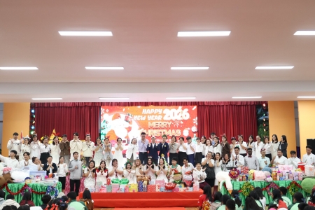 หัวข้อข่าว : พิธีทำบุญตักบาตรเนื่องในวันขึ้นปีใหม่และกิจกรรม Merry Christmas and Happy New Year Year ประจำปีการศึกษา 2568