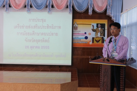 วันที่ 26 ตุลาคม 2555 ณ ห้องประชุมพุทธชาติ โรงเรียนเตรียมอุดมศึกษาน้อมเกล้า อุตรดิตถ์ นายวันชาติ อ่วมแจง รองผู้อำนวยการสำนักงานเขตพื้นที่การศึกษามัธยมศึกษา เขต 39 เป็นประธานเปิด การประชุมเครือข่ายส่งเสริมประสิทธิภาพการจัดการศึกษามัธยมศึกษา จังหวัดอุตรดิตถ์ พร้อมกับบรรยายในหัวข้อ ทิศทางการพัฒนาการศึกษาขั้นพื้นฐาน เพื่อเป็นแนวทางในการพัฒนาคุณภาพการศึกษาของโรงเรียนในสังกัด