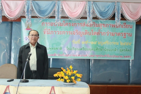 วันที่ ๑๗-๑๘ พฤศจิกายน ๒๕๕๕ งานอนามัย โรงเรียนเตรียมอุดมศึกษาน้อมเกล้า อุตรดิตถ์ร่วมกับกองทุนหลักประกันสุขภาพเทศบาลตำบลผาจุก จัดอบรมโครงการส่งเสริมสุขภาพนักเรียนที่มีภาวการณ์เจริญเติบโตต่ำกว่ามาตรฐาน โอกาสนี้ได้รับเกียรติจาก จ่าสิบเอกสุนทร คงทอง รองนายกเทศบาลตำบลผาจุก เป็นประธานในพิธีเปิดการอบรม โดยมีนายละม่อม ปิ่นอินทร์ รองผู้อำนวยการโรงเรียน กลุ่มบริหารงานทั่วไป กล่าวรายงานความเป็นมาของการจัดการอบรมในครั้งนี้ ณ ห้องประชุมพุทธชาติ