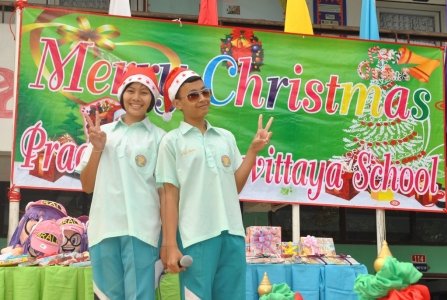 กลุ่มสาระการเรียนรู้ภาษาต่างประเทศ (ภาษาอังกฤษ) กลุ่มงานวิชาการ โรงเรียนประชาสงเคราะห์วิทยา ได้จัดกิจกรรมวันคริสต์มาส เนื่องในโอกาสวันคริสต์มาส เมื่อวันที่ ๒๕ ธันวาคม ๒๕๕๕ ณ ลานเวที หน้าเสาธง โรงเรียนประชาสงเคราะห์วิทยา ตำบลหนองกุลา อำเภอบางระกำ จังหวัดพิษณุโลก หลังเสร็จสิ้นพิธีเข้าแถวเคารพธงชาติ โดยมี นายพยัพ อนันนิล ผู้อำนวยการโรงเรียน กล่าวทักทาย และอวยพรนักเรียน พร้อมด้วยนางสาวฉัตรวนันท์ ขุนด่าน หัวหน้ากลุ่มสาระการเรียนรู้ภาษาต่างประเทศ Miss Cherrylyn H. Mahipos และ Miss Tina Angelie P. Brit ครูชาวฟิลิปปินส์ เป็นตัวแทนครูกล่าวอวยพรวันคริสต์มาส จากนั้น นางสาวสุภาพรรณ น้ำชัยศรี และนายชัยวัฒน์ เฉื่อยพุก นักเรียนชั้นม.๕/๑ ได้ทำหน้าที่เป็นพิธีกร ๒ ภาษา ดำเนินกิจกรรมตามลำดับ ซึ่งวัตถุประสงค์ของการจัดกิจกรรม คือ เพื่อเปิดโอกาสนักเรียนได้มีส่วนร่วมและแสดงออกทางวัฒนธรรม ตลอดจนมีเจตคติที่ดีต่อการเรียนรู้ภาษาอังกฤษ ซึ่งการเรียนรู้ภาษาจำเป็นอย่างยิ่งต้องควบคู่กับการเรียนรู้วัฒนธรรมด้วย....กิจกรรมสอดแทรกการเรียนรู้ภาษา ทักษะการสื่อสาร สนุกสนานกับการเล่นเกมร่วมกัน ทั้งผู้เล่น และผู้เชียร์ บรรยากาศเต็มไปด้วยความรัก ปรารถนาดี แบ่งปัน และมอบให้สิ่งแต่สิ่งดี ได้รับของขวัญและลูกอมทั่วกัน....................................(งานประชาสัมพันธ์โรงเรียนประชาสงเคราะห์วิทยา : ฉัตรวนันท์ ขุนด่าน ข่าว/ สภานักเรียน ภาพ)