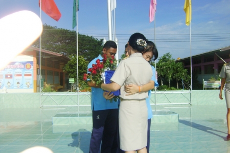 หัวข้อข่าว : ครูมานิตย์ อุปนันไชย แสดงความรู้สึกหน้าเสาธง