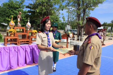โรงเรียนดงประคำพิทยาคมจัดกิจกรรมทบทวนคำปฏิญานตนและสวนสนามเนื่องในวันคล้ายวันสถาปนาคณะลูกเสือแห่งชาติ ในวันที่ ๑ กรกฎาคม ๒๕๕๖